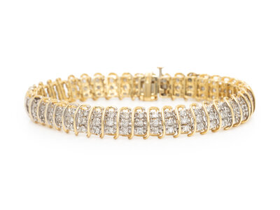 Round diamonds weighing approximately 2.60 carats total. 14 karat yellow and white gold. 7 1/4 inches long.