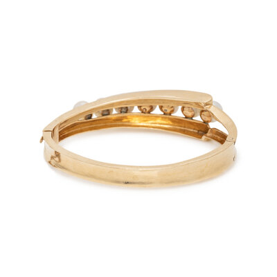 CULTURED PEARL AND YELLOW GOLD BANGLE BRACELET