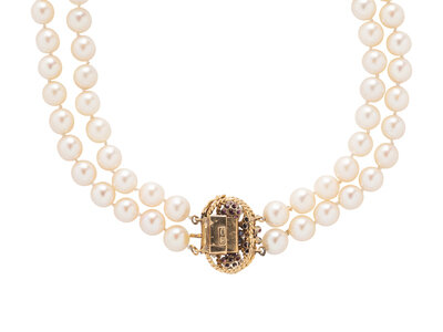TWO CULTURED PEARL NECKLACES WITH GEMSTONE CLASPS