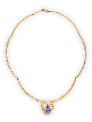 TANZANITE, DIAMOND, AND YELLOW GOLD NECKLACE