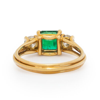 EMERALD, DIAMOND, AND YELLOW GOLD RING