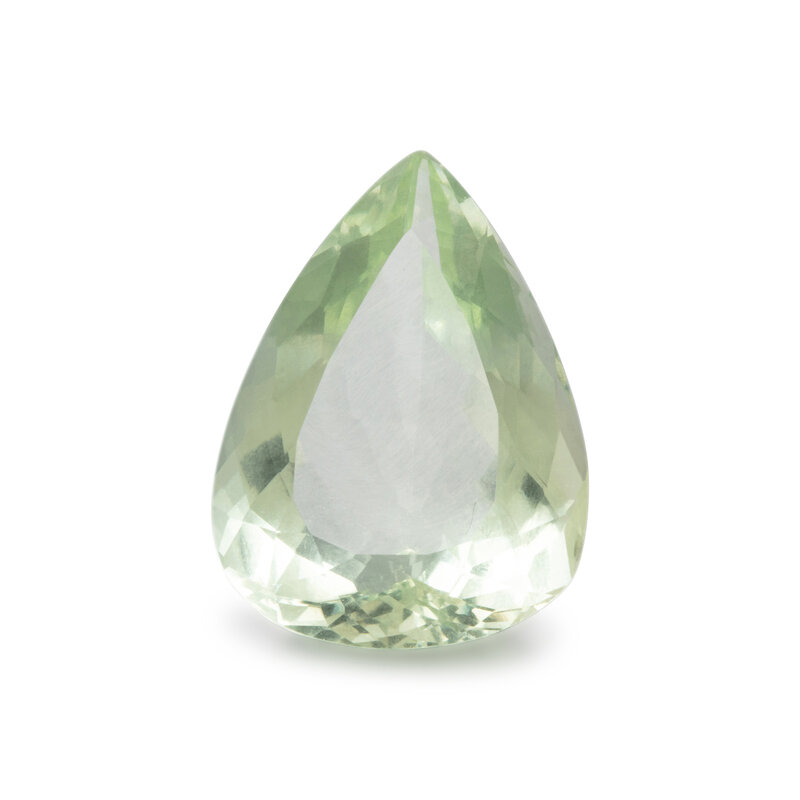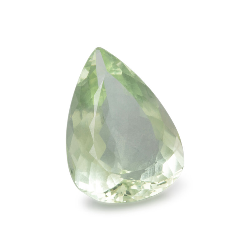 An unmounted pear shape light green beryl weighing approximately 16.75 carats.