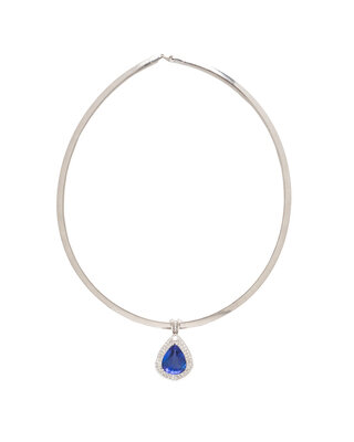TANZANITE AND DIAMOND PENDANT ON REVERSIBLE BICOLOR OMEGA CHAIN