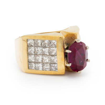 RUBY, DIAMOND, AND YELLOW GOLD RING