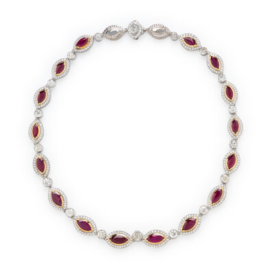 DIAMOND AND GLASS-FILLED RUBY NECKLACE