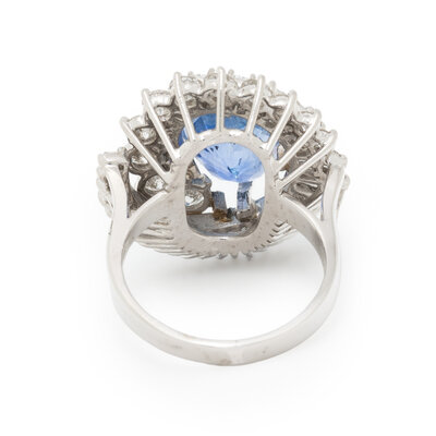 SAPPHIRE, DIAMOND, AND PLATINUM RING