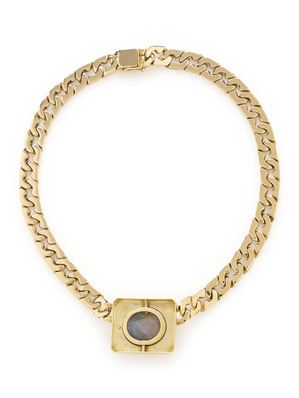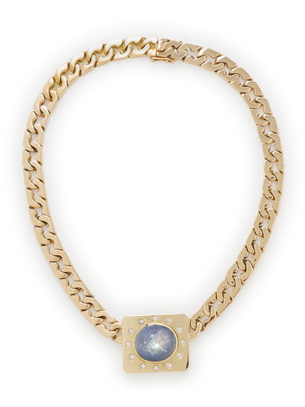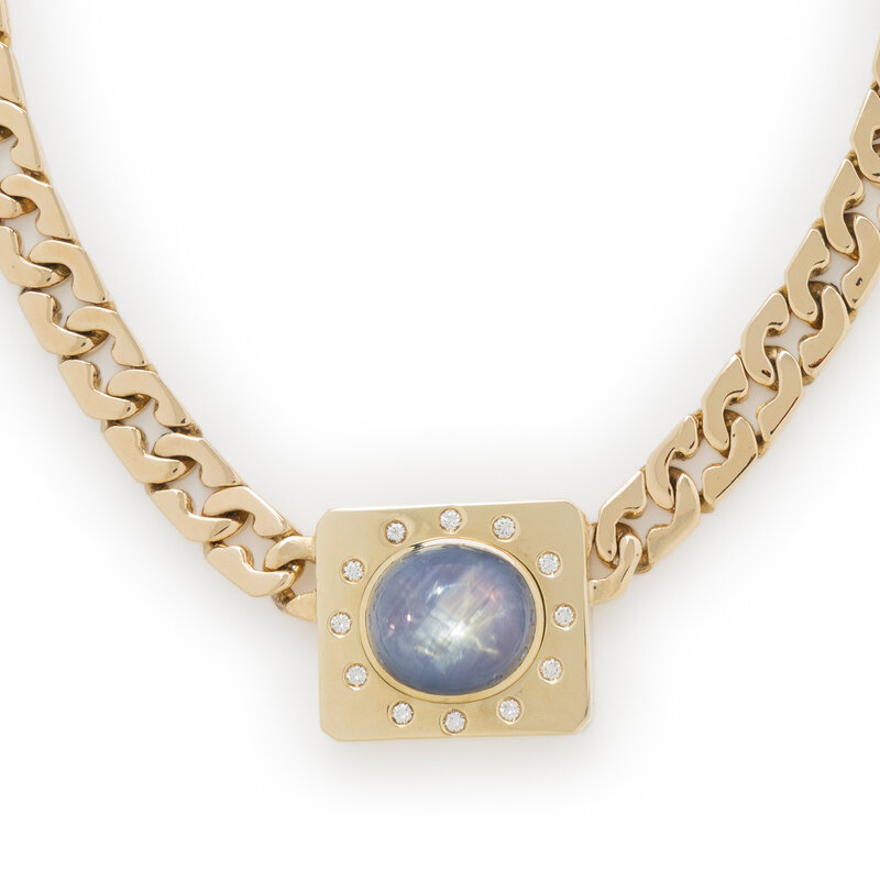 YELLOW GOLD, STAR SAPPHIRE, AND DIAMOND NECKLACE