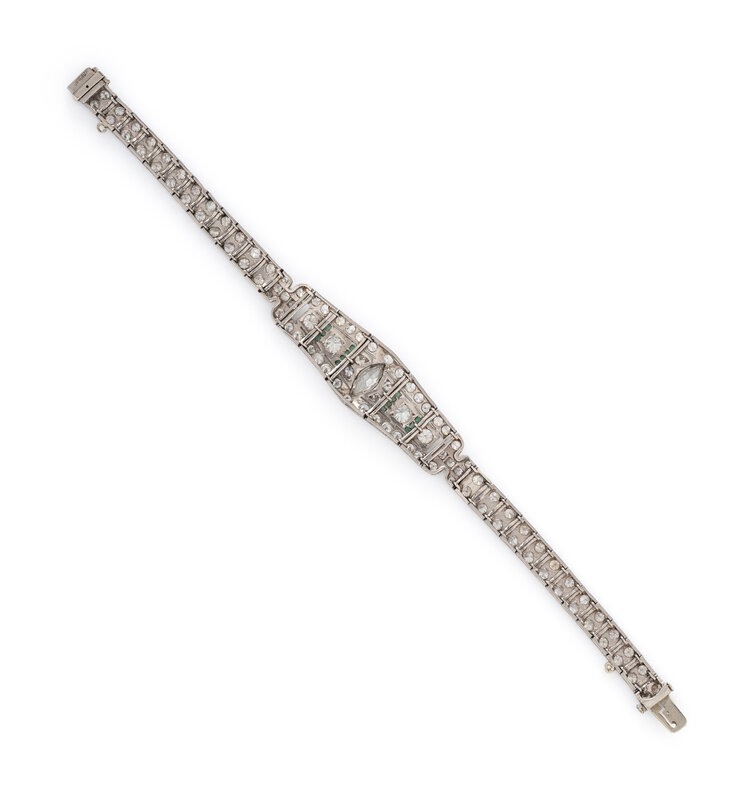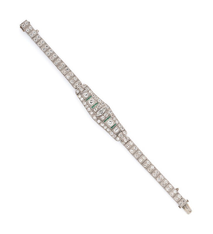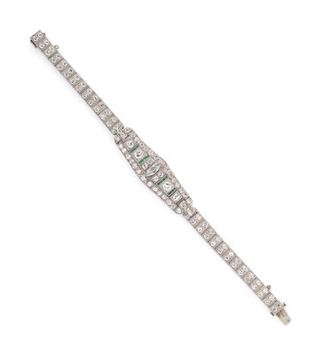 ART DECO, DIAMOND, EMERALD, AND PLATINUM BRACELET