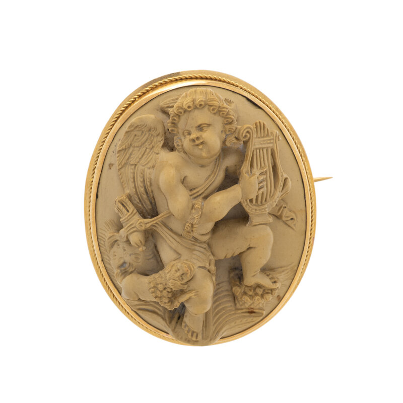 LAVA CAMEO AND YELLOW GOLD BROOCH