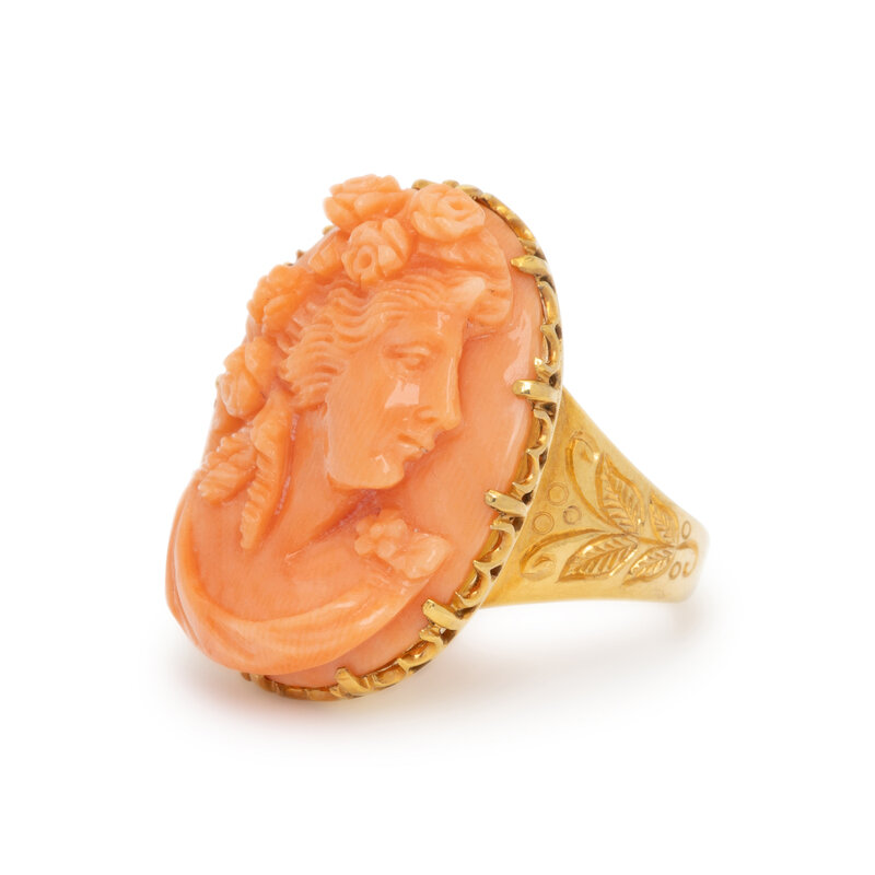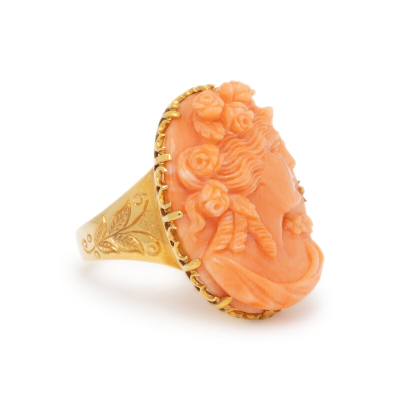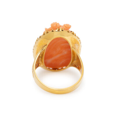 CORAL CAMEO AND YELLOW GOLD RING