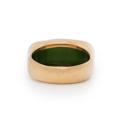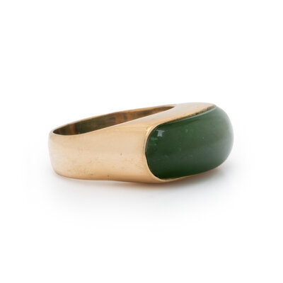 Cabochon cut jade. 14 karat yellow gold. Ring size 9.