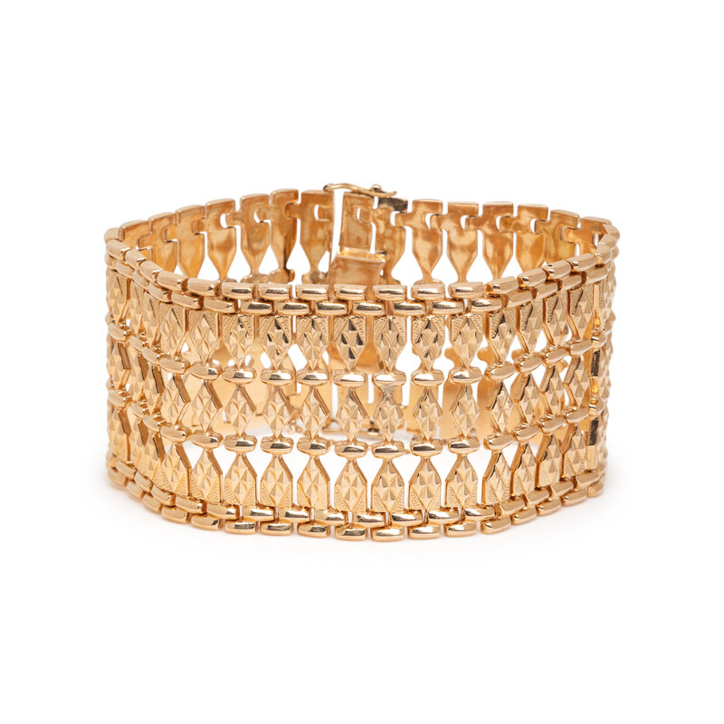 18 karat yellow gold. 7 5/8 x 1 1/2 inches.