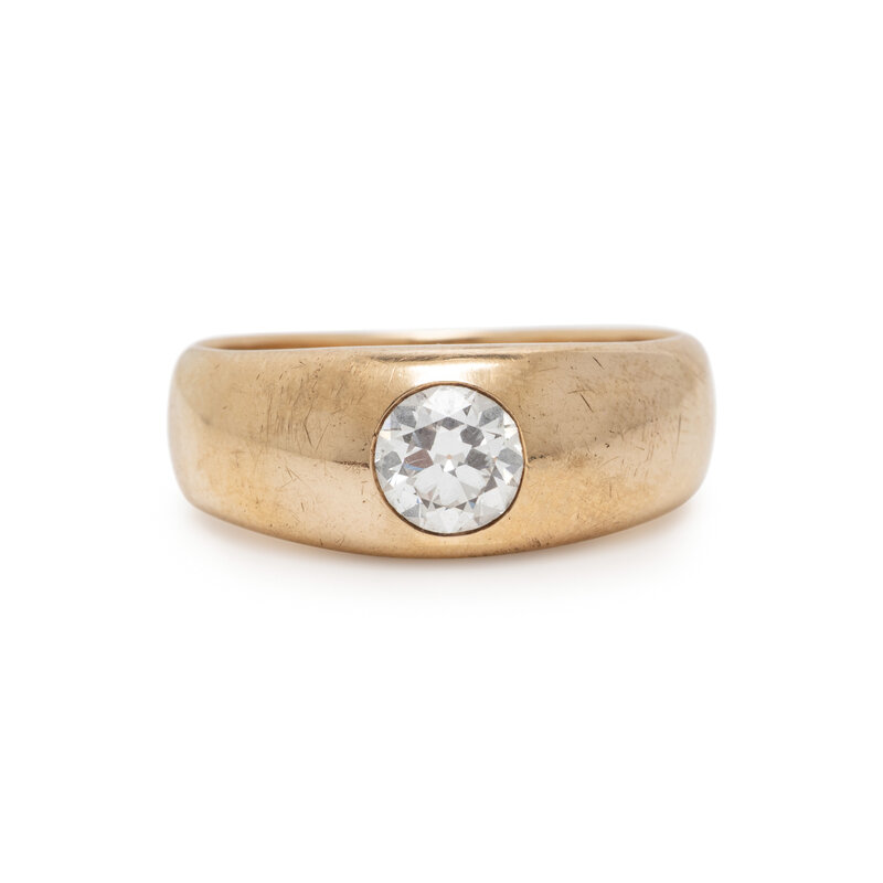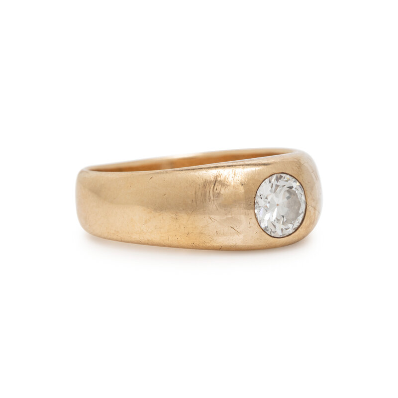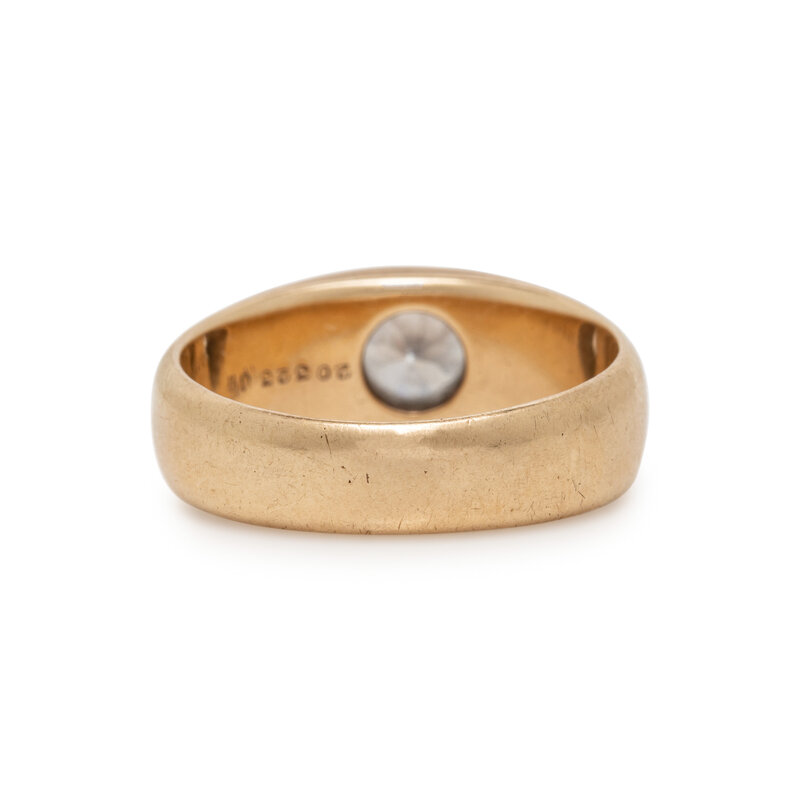 Round diamond weighing approximately 0.75 carat. 14 karat yellow gold. Ring size 9 3/4.