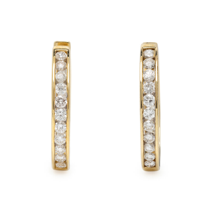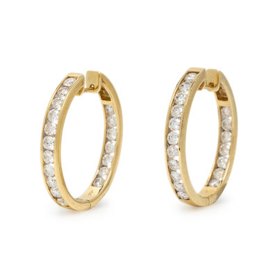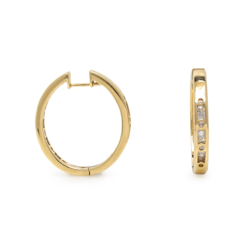 DIAMOND AND YELLOW GOLD HOOP EARRINGS