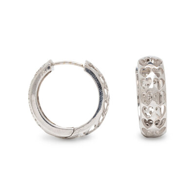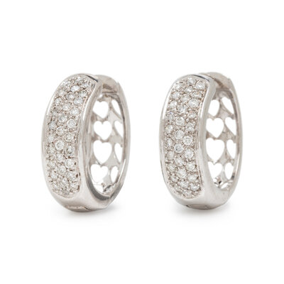 DIAMOND AND WHITE GOLD HEART MOTIF HOOP EARRINGS