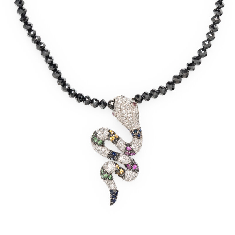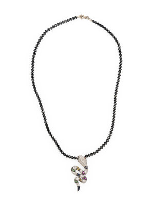 MULTIGEM, DIAMOND, AND WHITE GOLD SNAKE PENDANT WITH BEADED NECKLACE