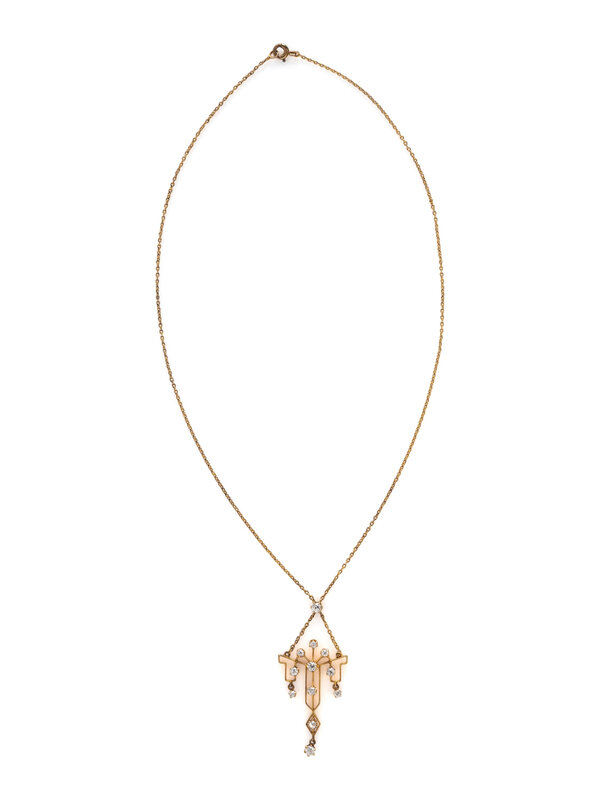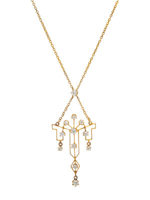 Old mine cut diamonds weighing approximately 0.75 carat total. Yellow gold. 16 1/4 inches long.