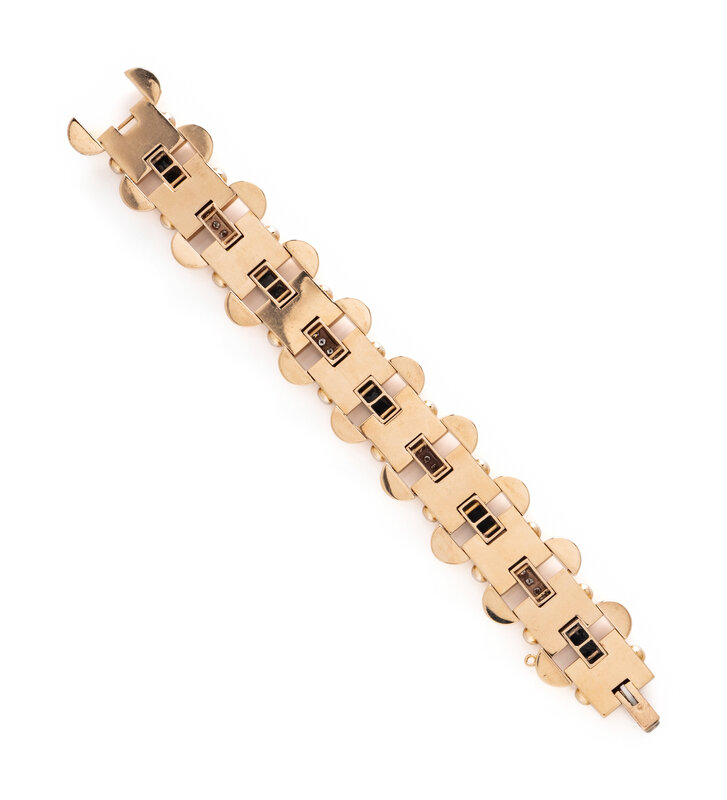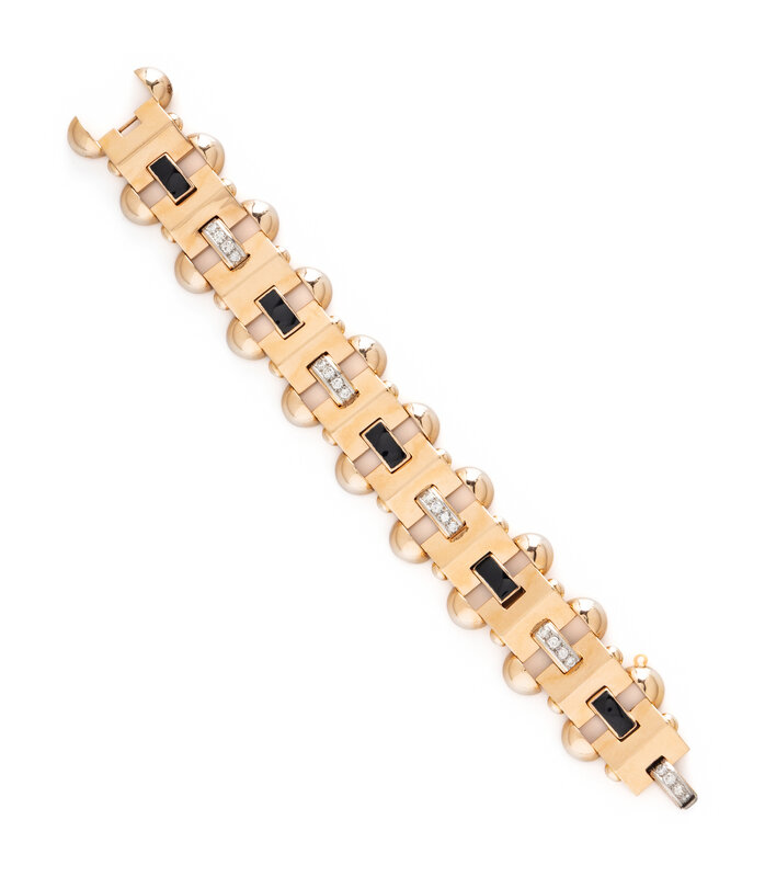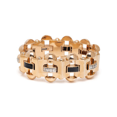 RETRO, ROSE GOLD, DIAMOND, AND ONYX LINK BRACELET