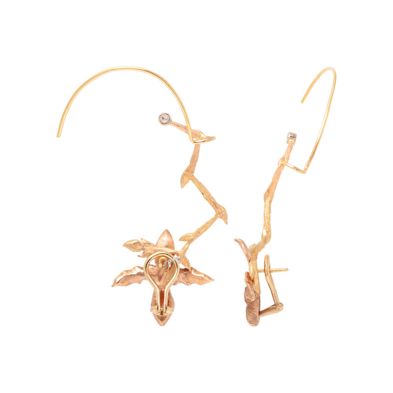 BICOLOR GOLD AND DIAMOND ORCHID EARRINGS