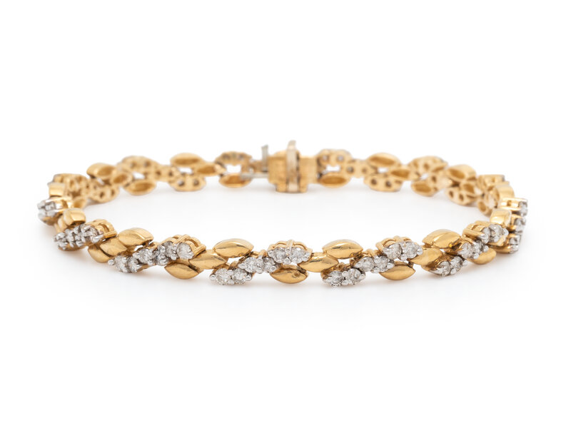 Round diamonds weighing approximately 2.25 carats total. 14 karat yellow gold. 7 inches long.