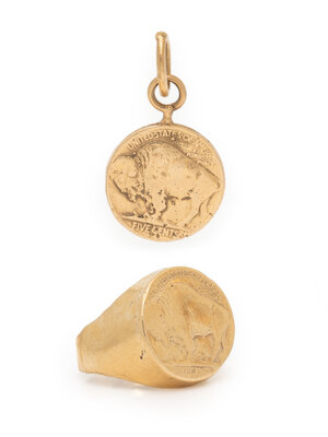 YELLOW GOLD BUFFALO NICKEL RING AND PENDANT