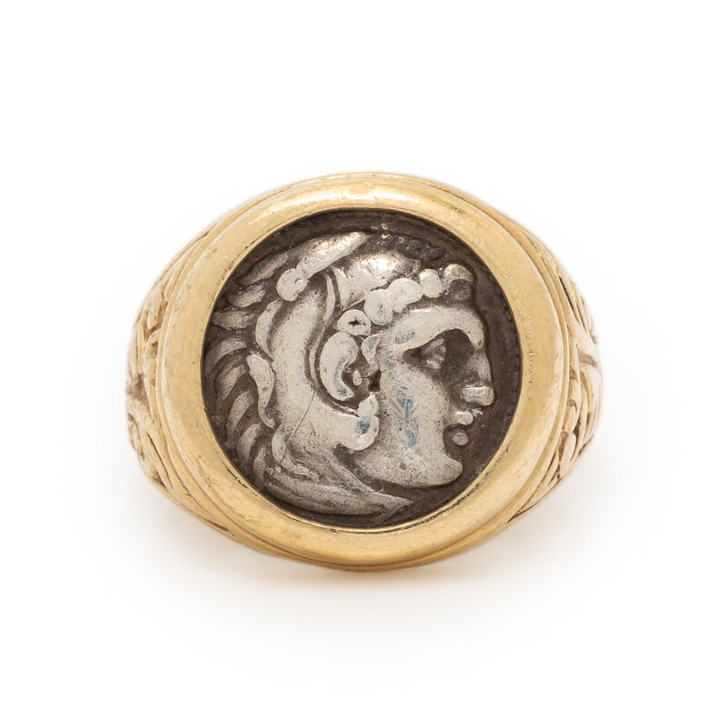 GREEK, SILVER DRACHMA AND YELLOW GOLD RING