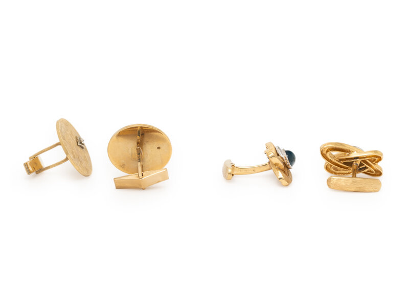TWO PAIRS OF BICOLOR GOLD CUFFLINKS WITH DIAMONDS AND GEMSTONES
