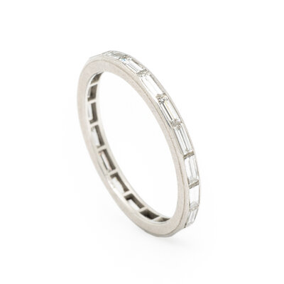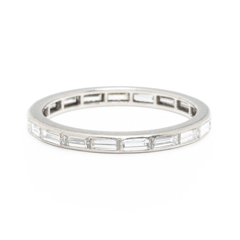 Baguette cut diamonds weighing approximately 1.70 carats total. Platinum. Ring size 7 3/4.