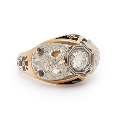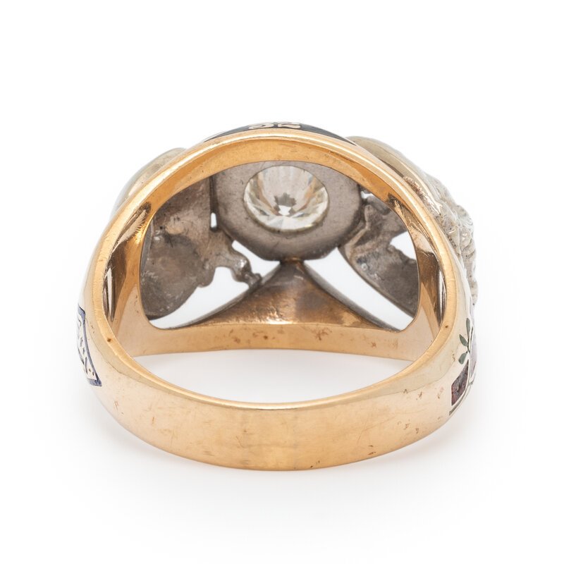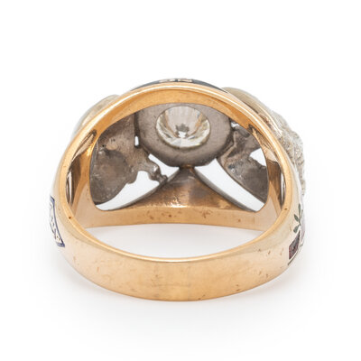 DIAMOND, ENAMEL, AND BICOLOR GOLD MASONIC RING