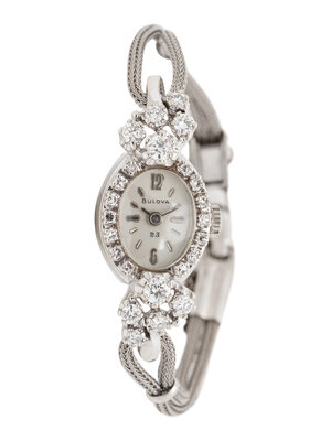 BULOVA, 14K WHITE GOLD AND DIAMOND DRESS WATCH