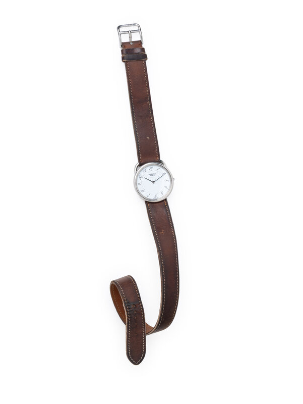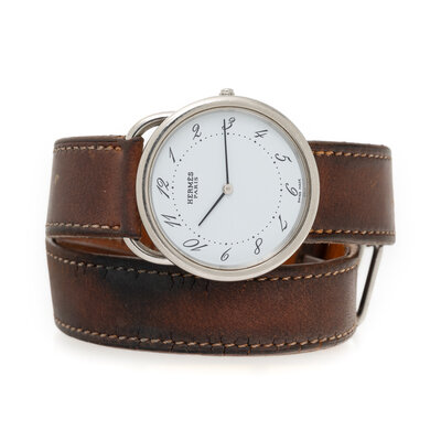 Bracelet/Strap: Double-wrap brown leather strap with Hermès stainless steel clasp