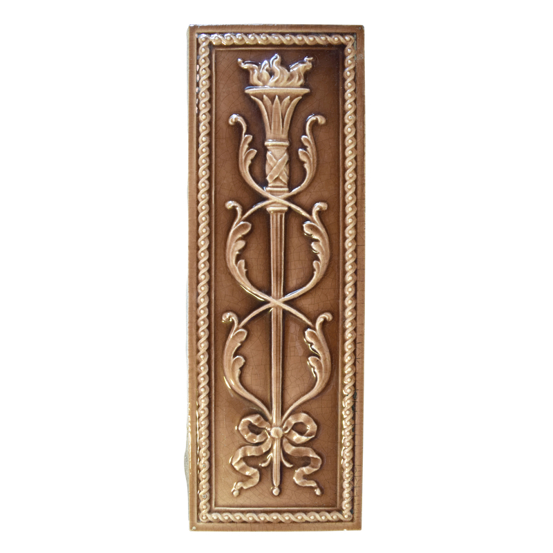 A Torch and Wreath Decorated Glazed Tile