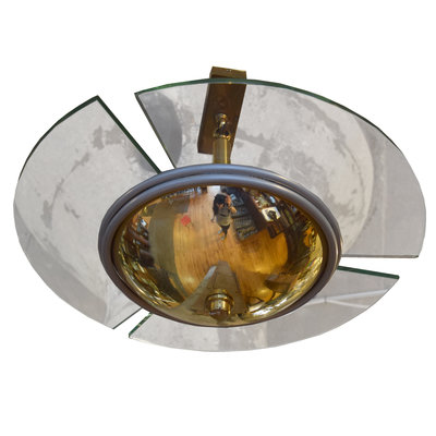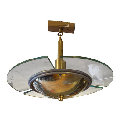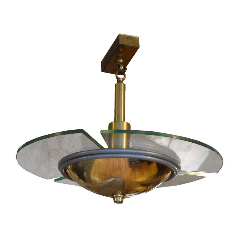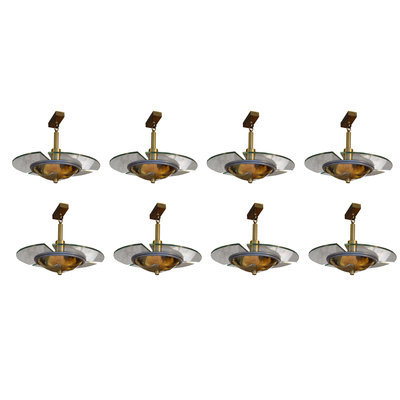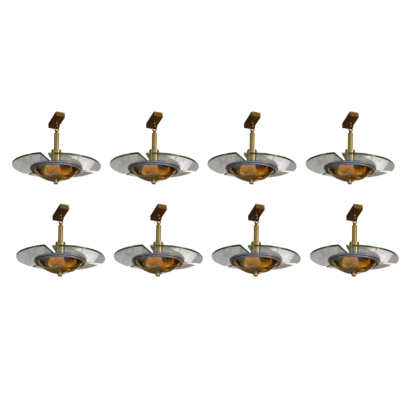 A Set of Eight Brass and Glass Light Fixtures