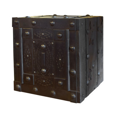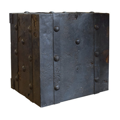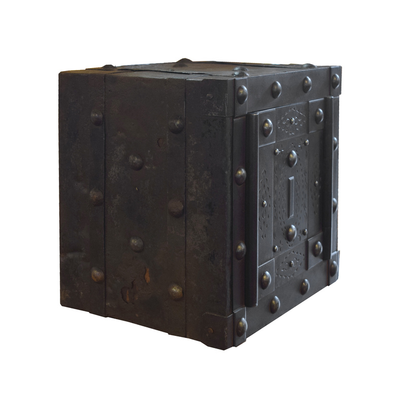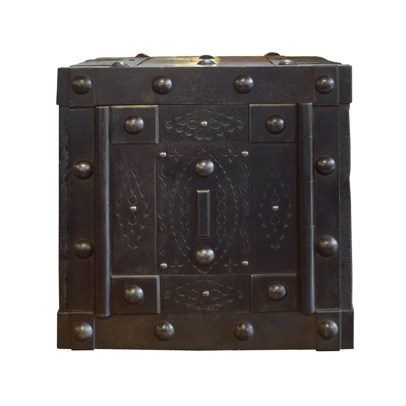 A Wrought Iron Hobnail Safe