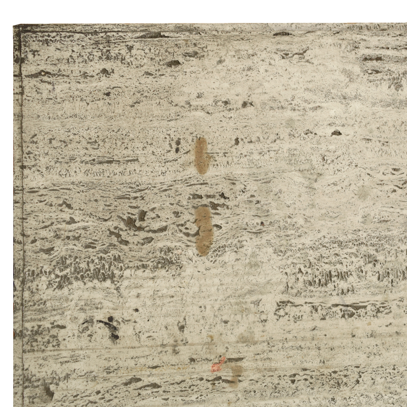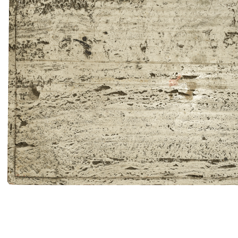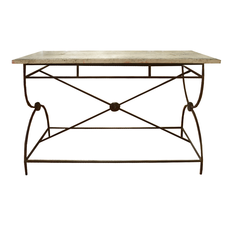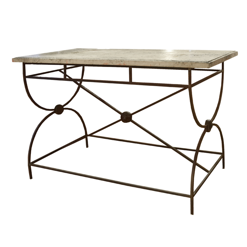 An Iron and Lead Travertine Top Table