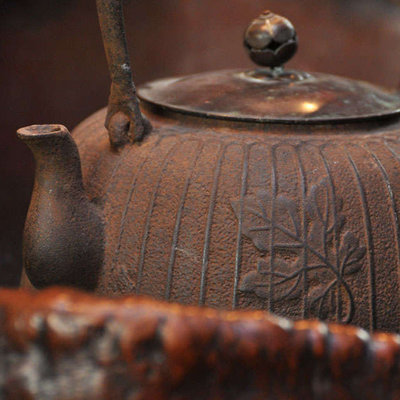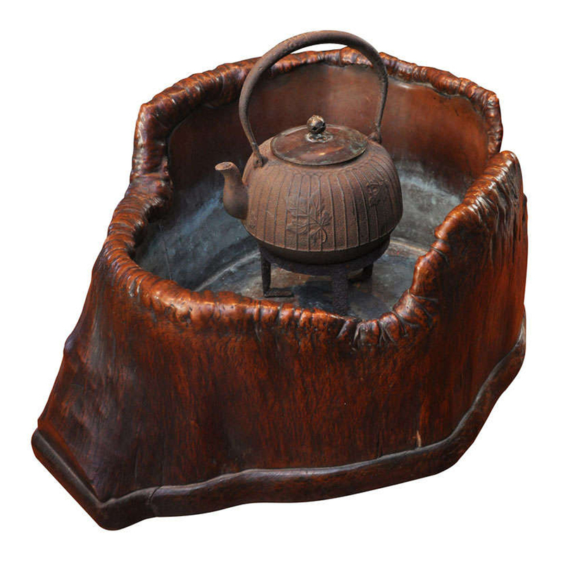 An Edo Period Wood and Copper Hibachi with Teapot and Stand