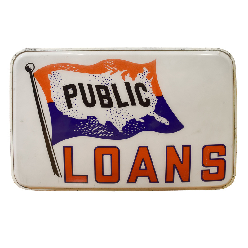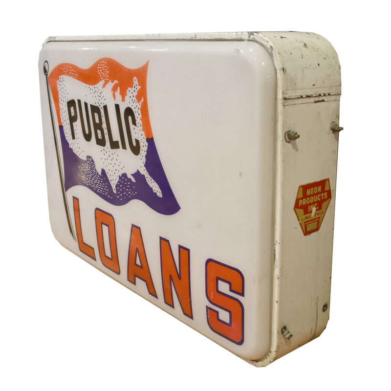 A Metal and Plexiglass Public Loans Light-Up Sign