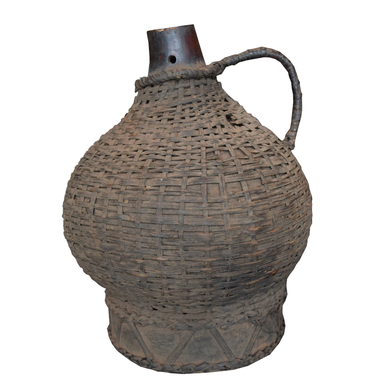 A Wood and Wicker Gourd Calabash