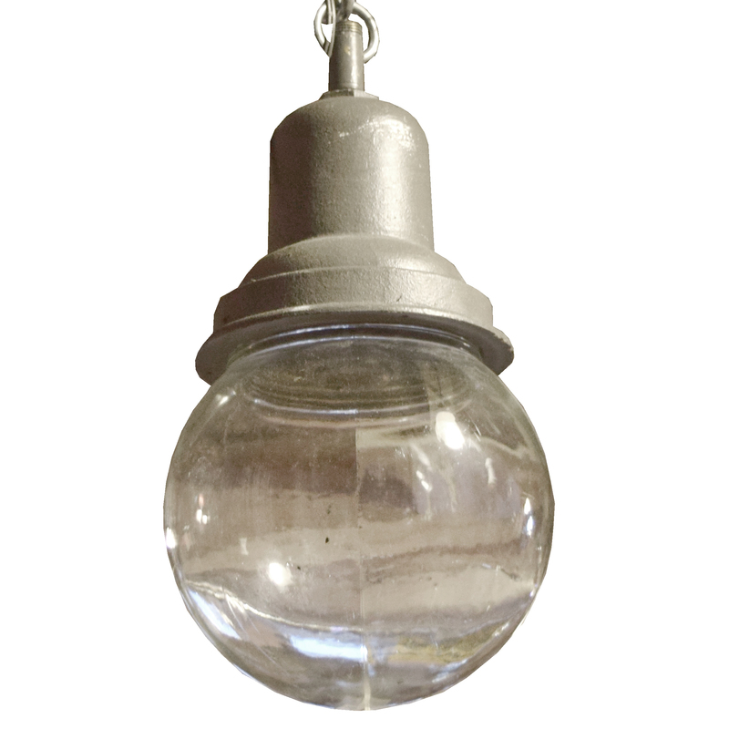 An Industrial Glass and Metal Light Fixture