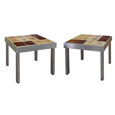 A Pair of Mid-Century Steel and Tile Tables by Roger Capron
