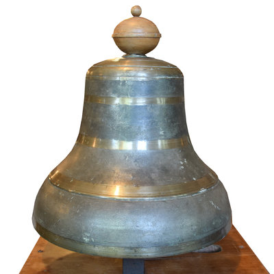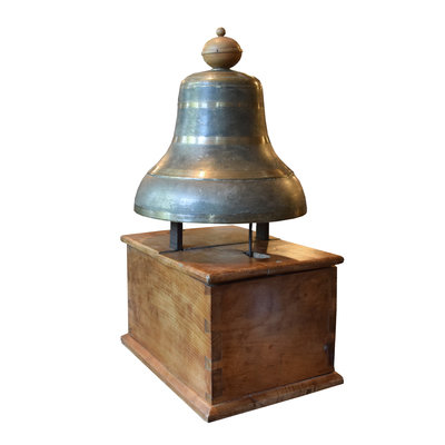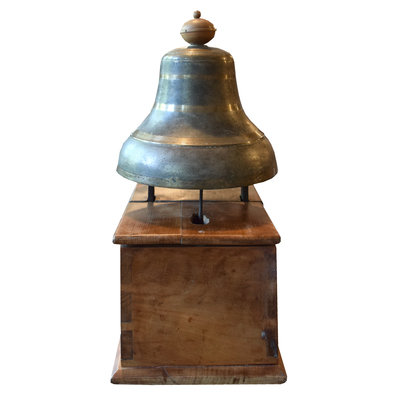 A Bronze Time Clock Bell on Wood Base