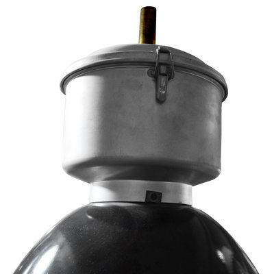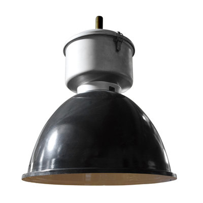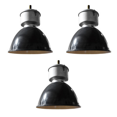 A Set of Three Enameled Steel Industrial Light Fixtures