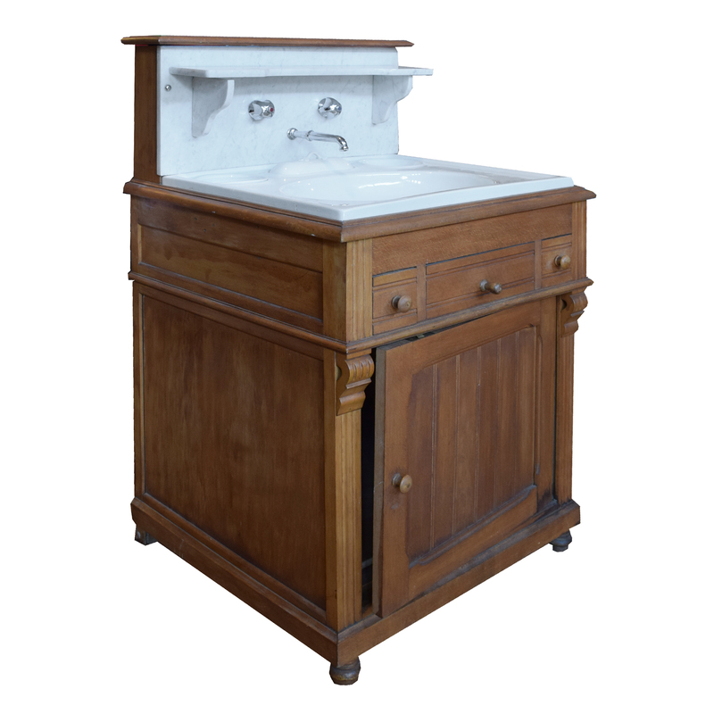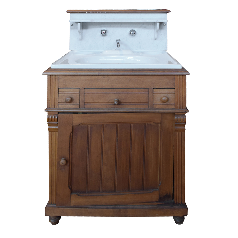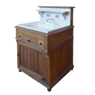 A Wood and Marble Wash Stand/Commode