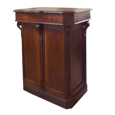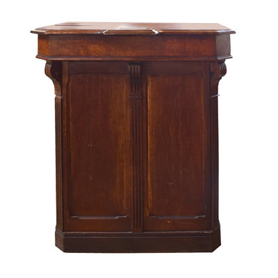 An Oak and Brass Maitre D' Stand
