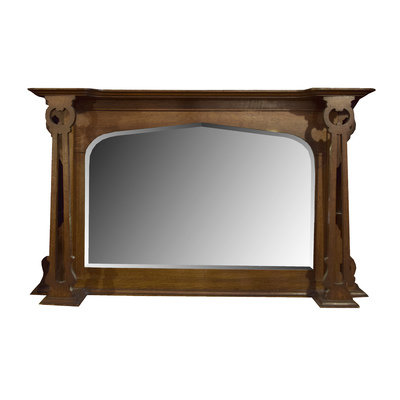 An Arts and Crafts Oak Overmantel with Beveled Mirror
