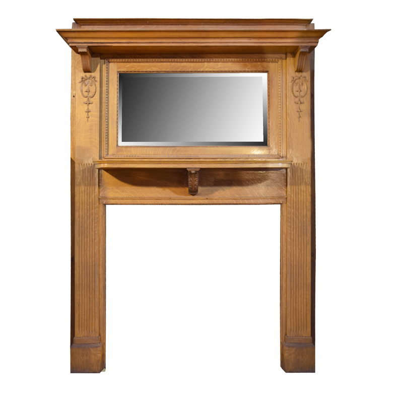 An Oak Quarter-Sawn Full Mantel with Mirror