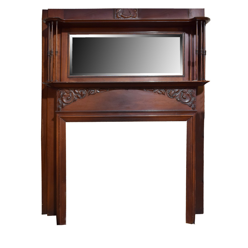 A Mahogany Full Mantel with Spindles and Beveled Mirror