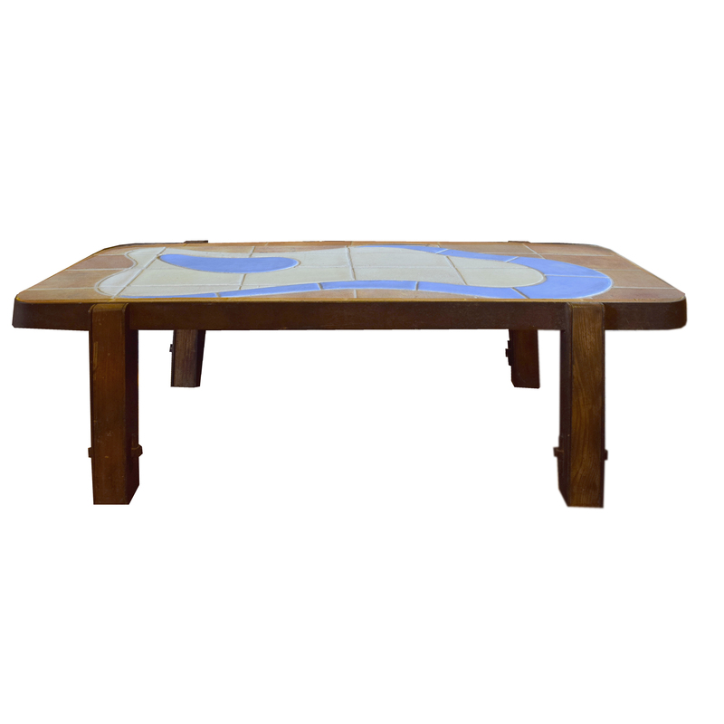 A Mid-Century Wood and Tile Table by Barrois for Vallauris