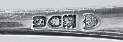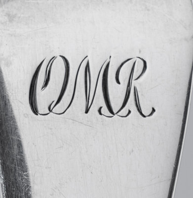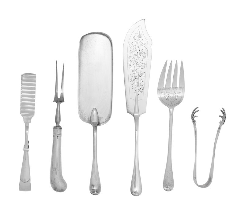 together with 9 dinner forks and 2 salad forks with four-tines and a different engraved monogram.