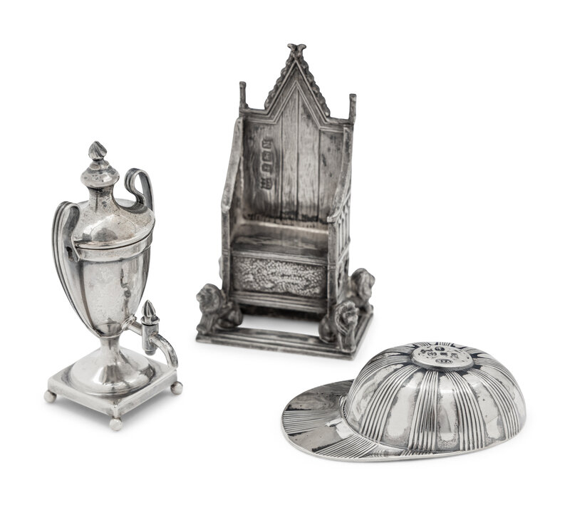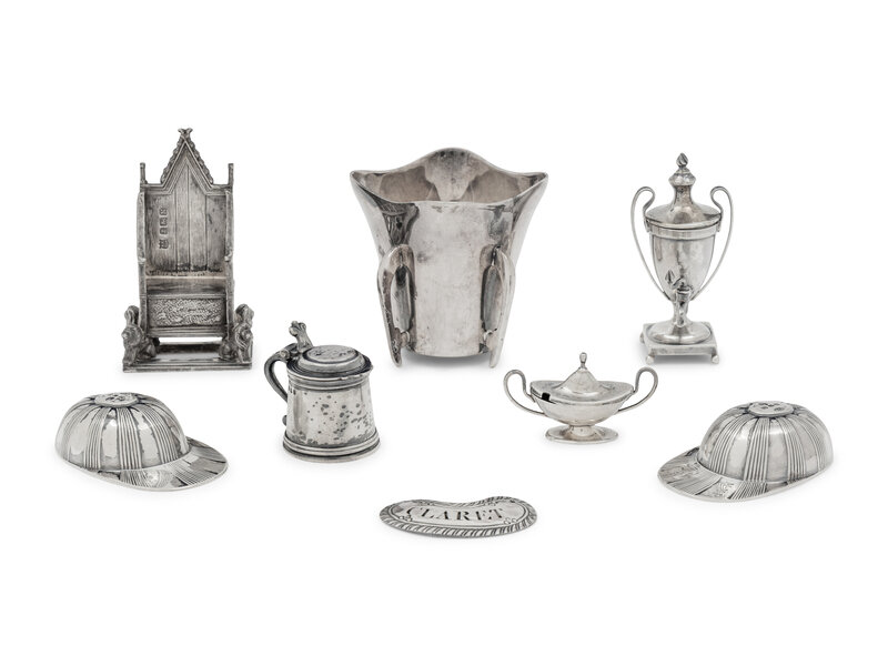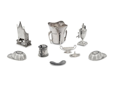 A Collection of Eight English Silver Miniature and Diminutive Articles